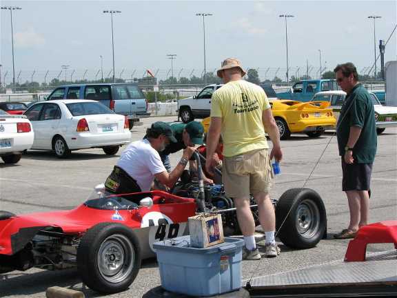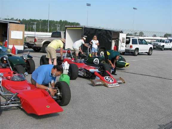 John Arnold's 69FF, Mike Henry's 69FB, Greg Carpenter's 41FB. Getting the cars prepped for the first session.