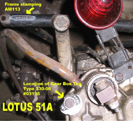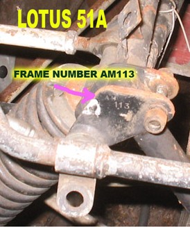 Additionally, the Frame Number is stamped on the underside of the engine Compartment Y-brace, just to the right of the right gearbox mounting bolt.